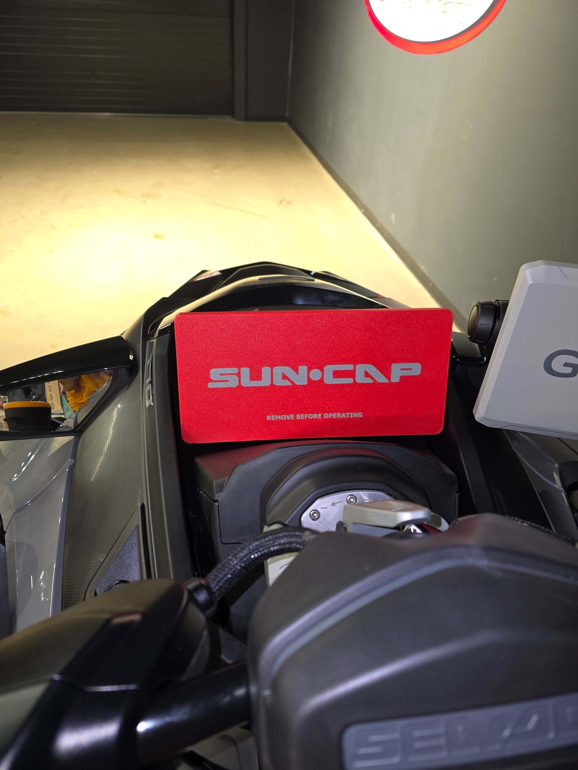 Made from durable weather-resistant ASA, our Large protects your screen from burning, cracking, and fading. If you have a Sea-Doo jet ski made in 2025 or 2026, this might be your guy. This cover is for a 10.5” wide screen. If you are unsure, email us at info@suncapusa.com and we will make sure you get the right model for your ski. Also, check the images at the left or the supported models page for photos of which covers go on which screens.